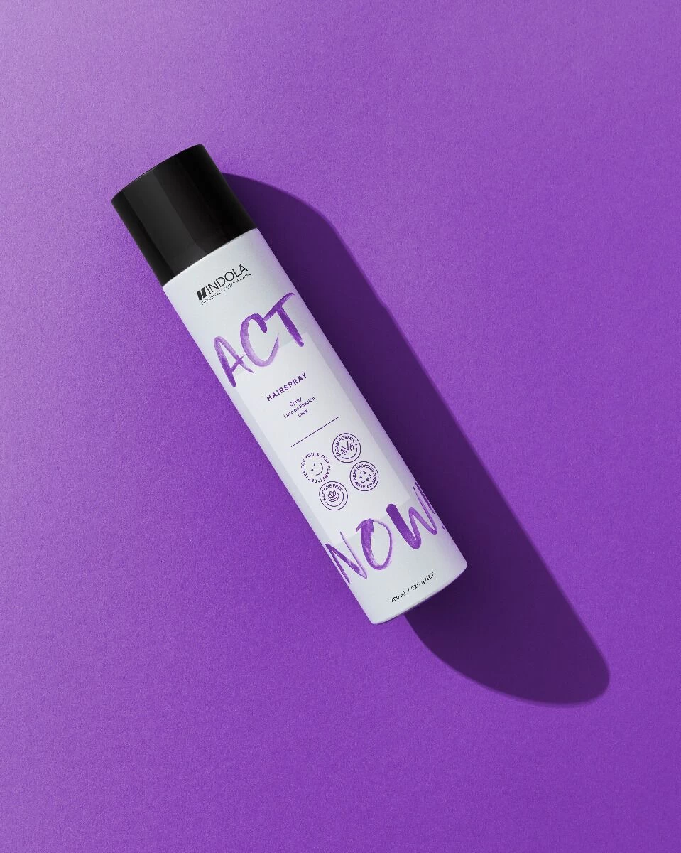 Indola ACT NOW! Hairspray is een siliconenvrije styling fixatiespray en die alle haartypes in model houdt. De spray heeft een extra fijne verneveling en geeft een droge en langdurige fixatie aan het haar met medium hold. De Hairspray is gemakkelijk uit te borstelen en laat geen residuen achter.